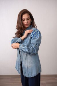 Eco-índigo; esta tela se tiñe a temperatura ambiente, lo que reduce 50% el consumo de energía a demás de ser teñida con tinte natural llamado índigo, por eso su tonalidad azul. Este tinte natural esta libre de anilina, la anilina es un compuesto tóxico para el cuerpo y el medio ambiente.